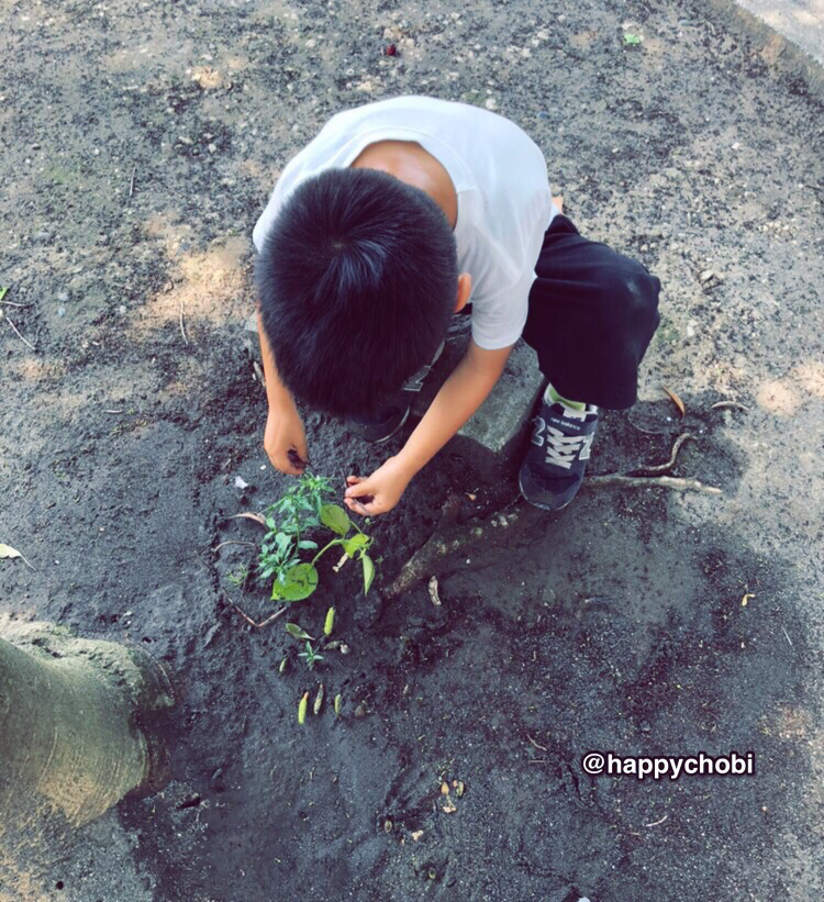神社のある公園にて。ここでも祈る。息子も一緒に祈る。