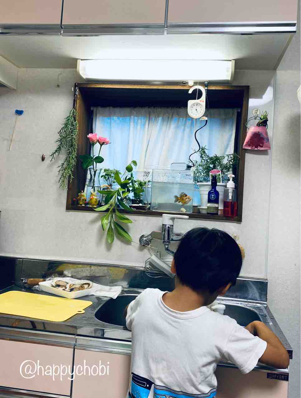 こちらでは殻を剥いたものしか買えないので、いつか殻付きホタテをさばくのが息子の夢。
