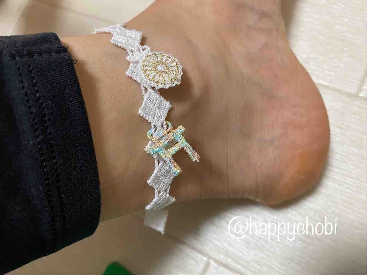 いろいろ悩み、アンクレットのように、足首につけることにした。