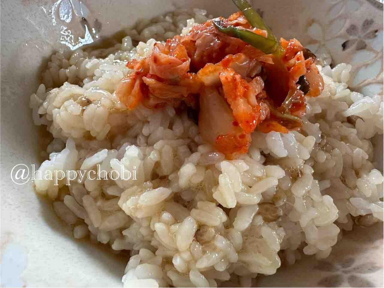 開き直って、寝る前に卵かけご飯を食べた日もありました……。これは「卵かけご飯キムチのせ」。