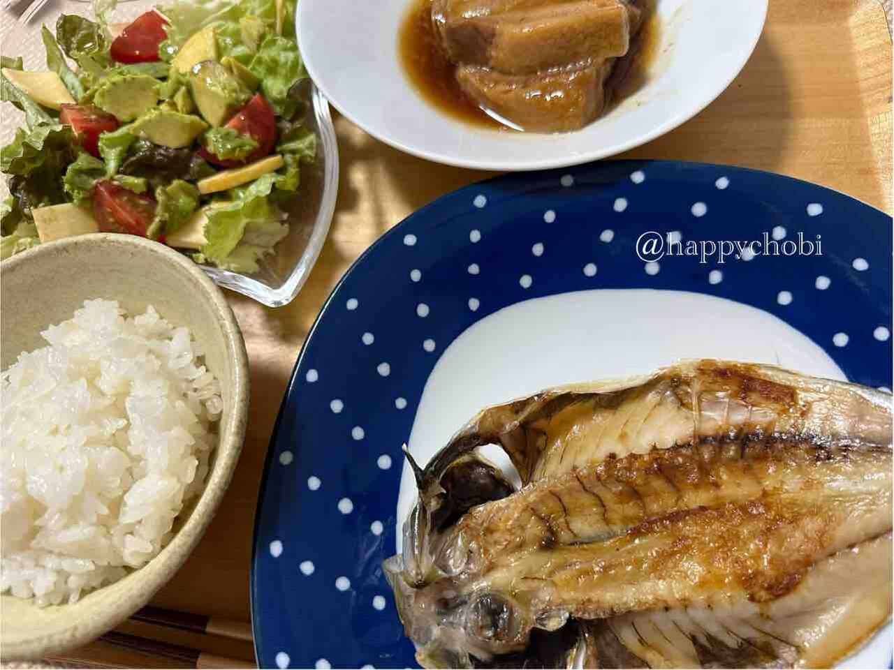 干物のおかげで和食感が出た昨日の夕飯。豚の角煮は差し入れでもらったもの。
