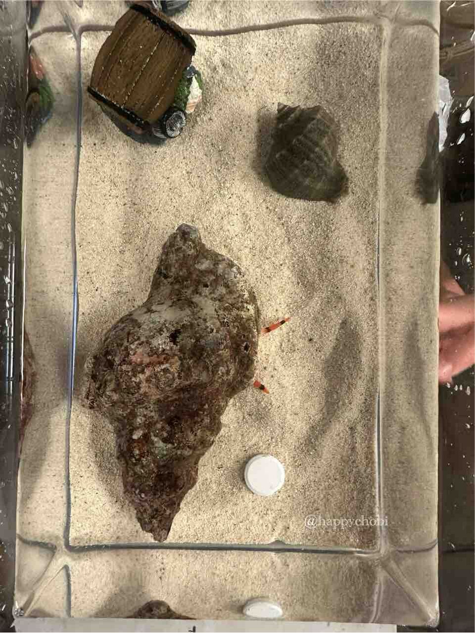 帰宅後、さっそくホラ貝とアカニシ貝の新しい水槽を立ち上げた息子。