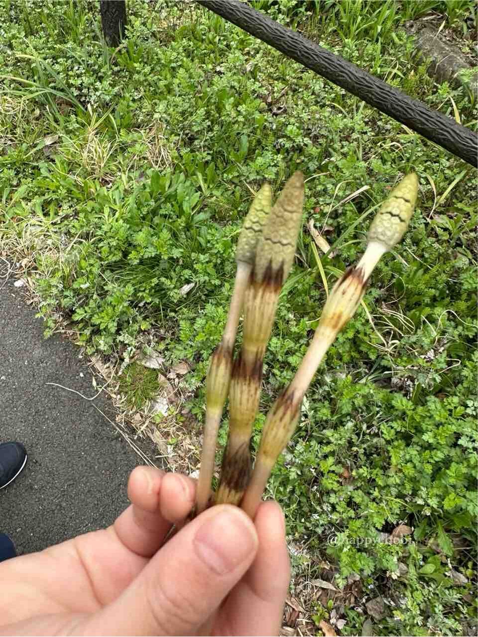 つくしとアケビの新芽を収穫。