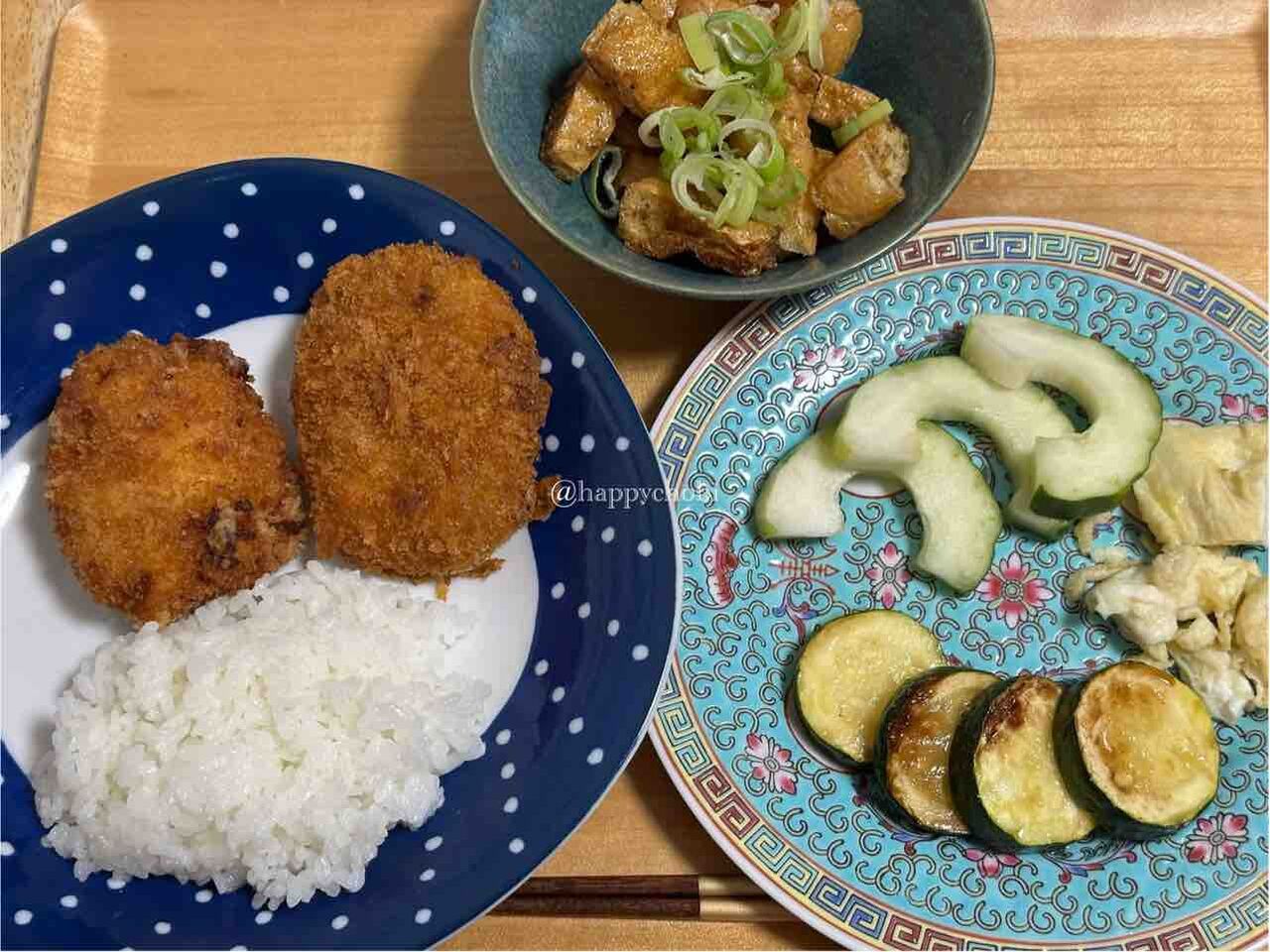 昨日の夕飯。お惣菜屋さんの揚げ物。
