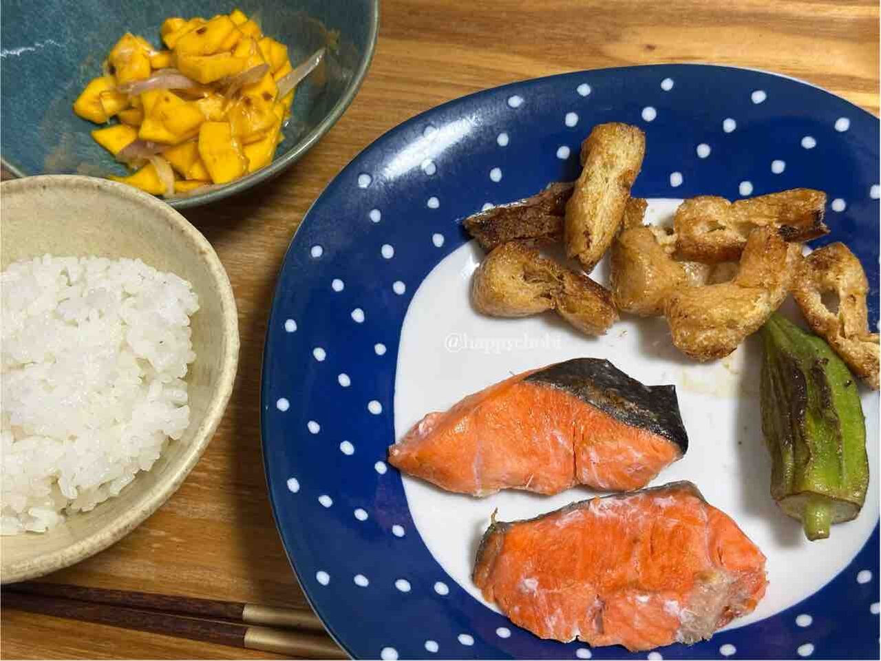 塩鮭の切り落とし。安くて便利だけど、家族には「しょっぱい」と不評。むむむ。